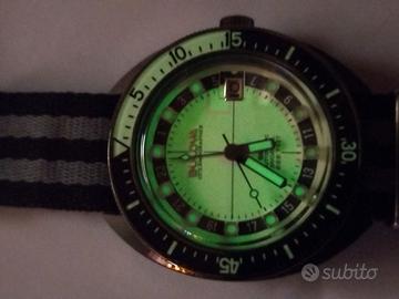 Bulova GMT Oceanographer Automatico Quadrante Bianco Grigio Zaffiro Orologio da Uomo 98B407 Elegante orologio Bulova Diver Automatico con Quadrante Bianco Grigio. Riserva di carica di 42 ore e cassa in acciaio inossidabile con corona a vite. Datario a ore 3. Lancetta GMT per il doppio fuso orario. Lunetta girevole bicolore. Vetro zaffiro antiriflesso. Movimento a 24 rubini. Quadrante completamente luminescente. Cinturino in tessuto. Cassa in acciaio inossidabile Cinturino in tessuto Dimensioni cassa: 41 mm Larghezza cinturino: 20 mm Impermeabilità: 200 metri.