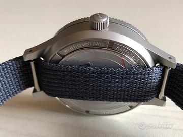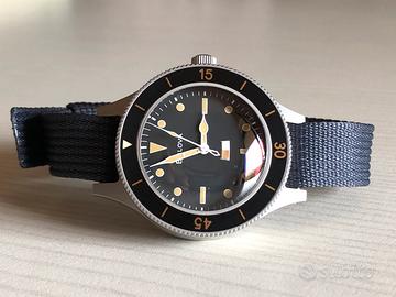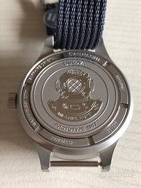 Vendo originale e raro Bulova Mil Schip quadrante nero con dettagli ocra e una speciale striscia di carta che, ispirata agli orologi militari, cambia colore se l'impermeabilità dovesse fallire.