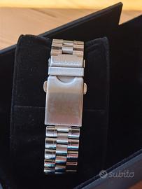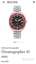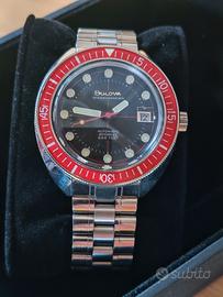Bulova Oceanographer, meglio conosciuto come Devil Diver, in riferimento al 666 inciso sul quadrante. Riedizione dello storico modello del 1972, ottimizzato per l'uso attuale. - Referenza: 96B334 - Movimento: Miyota 8215 - 21600 a/h - Riserva di carica: 40 ore - Cassa: 41 mm - Spessore: 14,5 mm - Fondello: chiuso - Impermeabilità: 200 metri - 666 feet - Vetro: zaffiro con trattamento antiriflesso - Bracciale: acciaio, con tutte le maglie - Chiusura: con logo e doppio pulsante - Full set L' orologio si trova in ottime condizioni. C'è qualche segnetto dovuto al normale utilizzo, avvenuto comunque in alternanza con altri pezzi e con l'attenzione di un appassionato. Assicuro imballo accurato e spedizione immediata Non scambio e non permuto, nemmeno con iPhone, Ps4, Seiko, Citizen, Hamilton, Squale, Longines, Glycine, Yema, Vostok, Tudor, Oris, Mido, Rado, Doxa, Edox, Zodiac, Tissot, Zenith, Laco, Htd, Timex, Orient, Locman, Venezianico, Swatch, Tag Heuer, Nomos, Christopher Ward