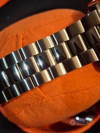 Come nuovo, da collezione personale, garanzia a tutto il 2026. Dotazione completa di confezione e certificato di garanzia. Funzione Crono Tipo movimento Quarzo Materiale cassa Acciaio Finitura cassa Acciaio Vetro Zaffiro Tipo cinturino Bracciale Metallo Fibbia Deployante Tipo quadrante Analogico Impermeabili WR 10 Bar Diametro cassa (mm)42,00 Spessore (mm)13,00 Peso (gr)192,00