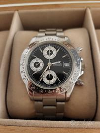 Vendo orologio cronografo Bulova automatico Referenza 13067 Movimento Valjoux 7750 Quadrante Reverse Panda nero con contatori bianchi Datario a ore 3 Ghiera tachimetrica satinata Cassa e bracciale originale in acciaio Fondello serrato a vite