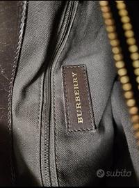 Bellissima borsa Burberry con il classico motivo Check beige, arricchita da dettagli in pelle nera e ferrature color oro. Un modello elegante e versatile, perfetto sia per l’uso quotidiano che per occasioni più raffinate.