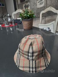 Cappello bucket double face con classico motivo vintage Check da un lato e beige uniforme dall'altro, nasce senza etichetta proprio per la reversibilità