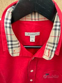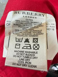 Colore rosso acceso con iconico motivo check Burberry all’interno del colletto e dei polsini. Logo cavaliere ricamato sul petto.