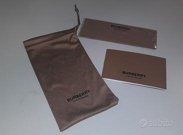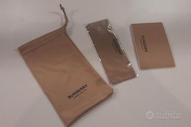 Burberry Sacchetto e Panno per la Pulizia Marrone Originali Per Occhiali Burberry Originale, Nuove mai usate. Astuccio e Panno per la Pulizia Ancora Sigillato Colore: Marrone Dimensioni: 18x10 cm circa e Libricino B-3