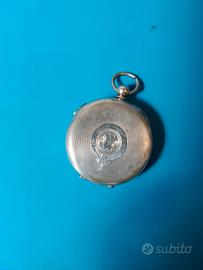 bussola moderna inserita nella cassa in argento di un orologio da tasca