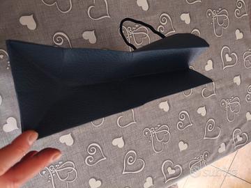 Vendo questa busta di carta della Dior, di colore blu scuro con scritta in argento, praticamente come nuova, ottima per effettuare un regalo, misure 27cm di altezza, 31,5cm di larghezza e 11cm di apertura.