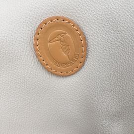 Busta Trussardi in tela cerata panna, Vintage anni'80-*90, usata ben tenuta, presenti lievi segni del tempo, borsa esattamente come da foto.