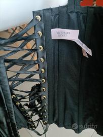 Con stecche interne, taglia M, ma va bene per chi porta una 2da di reggiseno (nero è introvabile vedi modello in verde ad esempio), con perizoma a corredo, davvero eclettico: elegante e perfetto come sottogiacca x pantaloni, gonne diritte, a pieghe, a sbuffo.Seta 100%.Accordi da prendere x ritiro/consegna.