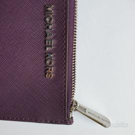 Michael Kors Jet Set Travel Small Top Zip Coin viola. Tasca con cerniera. Nella parte esterna posteriore scomparto porta documenti trasparente, porta carte. Gancio portachiavi. Comodo in viaggio o in borsa