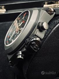 Raro esemplare di Buti Yanick II 'BLACK RAIN' con cassa 42mm in titanio PVD e quadrante in fibra di carbonio, edizione limitata e numerata di 500 pezzi del 2010. Orologio mai indossato e completo di tutto il suo corredo originale.