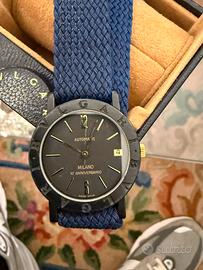 bulgari Carbon Gold edizione milano per il 10º anniversario Solo 100 pezzi al mondo 1994 Perfettamente funzionante e prova superata Tiene il tempo perfettamente ha la sua scatola originale I segni di utilizzo sono soprattutto sul fondello Come evidenziato in foto Il vetro praticamente non ne ha valutazione chrono24 1200 € trade omega tudor iwc