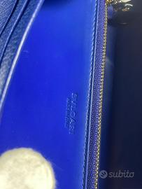 Bellissimo portafogli Bvlgari, dalla collezione Monete, in pelle di capretto blu intenso.