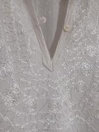 Caftano bianco.taglia L/XL, maniche 3/4. cotone e ricami lucidi sulla scollatura davanti, dietro e sul bordo maniche. Lunghezza cm138. Ha tre puntini neri sotto la manica destra. Usato con accessori per costume medievale .ottimo stato. Consegna a mano