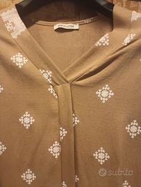 Splendido abito lungo a caftano in una calda tonalità color ocra/senape, arricchito da raffinati ricami geometrici e floreali di colore bianco. Il capo appartiene alla "New Collection" ed è perfetto per un look boho-chic, etnico o per occasioni speciali che richiedono uno stile modesto ed elegante.