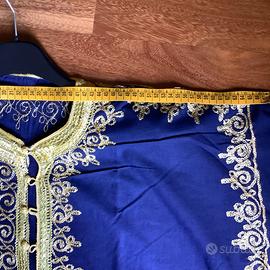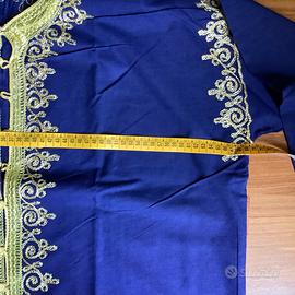 Colore blu, passamaneria color giallo oro. Misure in foto, taglia unica. Nessun difetto