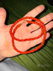 Vendo cone da titolo collana in corallo siciliano e susta in oro 750. La collana è in ottime condizioni e il corallo è a chicchi di riso. Lunghezza:50cm Peso: 22g Per ulteriori info non esitate a contattarmi Possibilira di spedizione