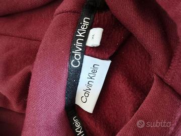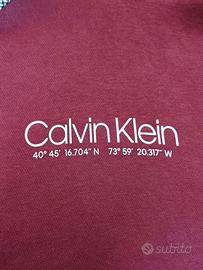 Felpa Calvin Klein originale, taglia XL, colore bordeaux. Modello con cappuccio, tasca a marsupio e logo Calvin Klein Jeans ricamato sul petto. Sul retro presenta coordinate decorative, dettaglio tipico delle collezioni CK più recenti. Materiale morbido e resistente (70% cotone, 30% poliestere). Condizioni ottime: nessun difetto, nessun scolorimento, tessuto perfetto. Ideale per outfit casual, streetwear o uso quotidiano. Consegna a mano su Roma o spedizione tracciata.