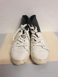 Calvin Klein - sneakers da donna alte, n.37, in pelle bicolore bianco-nero.