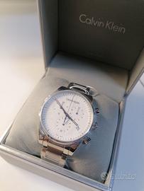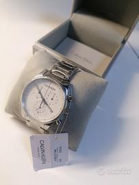 Nuovo Mai indossato! Cronografo con movimento al quarzo Swiss Made ETA 901.001. Cassa in acciaio diametro 42 mm. Fondo in acciaio serrato a pressione. Corona di regolazione in acciaio serrata a pressione. Vetro minerale. Quadrante bianco. Cinturino in acciaio con chiusura deployante. Datario con giorno del mese a ore 4. Water Resistant 3 Atm. Prezzo di listino ? 349,00