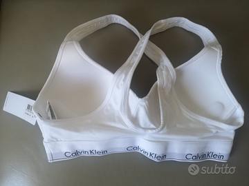 Come da titolo vendo reggiseno bianco underwear Calvin Klein originale , nuovo e mai usato . Ancora con etichetta ( vedi foto ). Con banda logata a contrasto