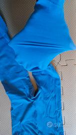 Calzamaglia leggins blu elettrico praticamente nuovi. La taglia è tra una S e una M. Piuttosto coprenti, credo simile ai 50 denari. Sono elastici ma non quanto i collant. Misure: 19,5 cm parte alta larghezza, 22 cm cavallo, 60 cm lunghezza totale, 9 cm parte più bassa larghezza(gamba). Come lunghezza arriva all'altezza del ginocchio circa.