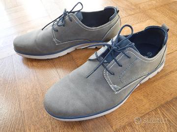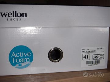 Vendo scarpa Wellon scamosciata idrorepellente misura solo da 41 ,5 modello calzatura bassa colore grigio con stringhe lacci blu per uomo. Per ritiro a mano contattami prima, no altro o perditempo.
