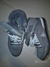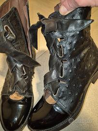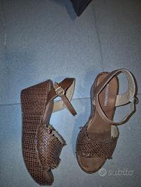 Vendo, solo insieme, 2 paia di calzature donna di vera pelle+ regalo scarpe sportive Le Coq. Tutto tg 39. Ottima manifattura e marca. Usate poco. 1 stivaletto nero in pelle di struzzo e vernice, con leganti grossi in pelle e apertura sul davanti simil ballerina. 1 zeppa in pelle intrecciata marrone. Tutto molto comodo.