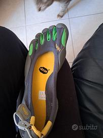 Vendo scarpe Vibram FiveFingers modello M1051, taglia 42 (M42). Ideale per chi cerca l'esperienza "barefoot" (piede nudo), garantendo massima sensibilità al suolo, propriocezione e rinforzo della muscolatura del piede. Perfette per camminata naturale, Pari al nuovo. Usate una sola volta per prova (vedi foto della suola e dell'interno, perfettamente integri). Uncluse di scatola originale e imballaggio interno e calzino con dita. Igienizzate e pronte all'uso. Suola Vibram ad alta aderenza, tessuto traspirante e calzata a "guanto" estremamente leggera. Disponibile per spedizione immediata o consegna a mano Roma Cassia.