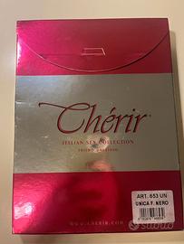 Calze Autoreggenti Cherir con dettagli in pizzo e fiocchetti e cucitura posteriore. Modello Art. 653 N. Taglia Unica. Colore nero. Made in Italy. Nuove imbustate.