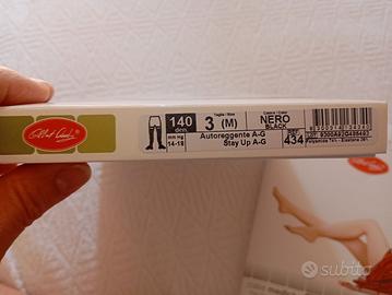 Calze autoreggenti a compressione graduale 140 Den, a punta chiusa. Modello prevenzione. Marca Albert André . Taglia 3 (M)- vedi foto per misure caviglia, polpaccio, coscia, statura, peso. Nuove in confezione originale