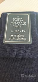 Vendo, causa inutilizzo, calze da uomo di colore blu, tessuto composto da 80% lana e 20% acrilico. Nuove, mai indossate, munite ancora del sigillo di chiusura e di garanzia. Taglia 12 e 1/2 -13 (43-44). Marchio Regina Schrecker. Molto eleganti.