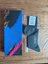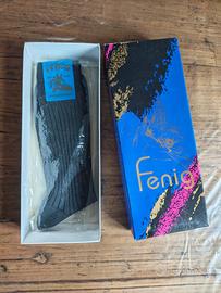 Calze "Fenig" vintage in cotone filo di scozia, n. 43-45, grigie, con scatola.
