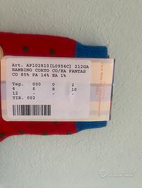 Calze Gallo taglia 6, num. 27/30 Calze in cotone Made in Italy Colori rosso, bordi azzurro e blu, pois verde scuro