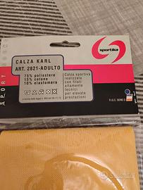 Vendo calze Karl da calcio adulto gialle come da foto ancora nella confezione originale.
