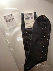 Calze a fantasia mini quadratini sul fondo grigio. made in Japan