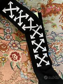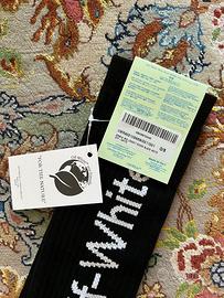 calze firmate Off-White, caratterizzate dal celebre logo a frecce bianche su sfondo nero e dalla scritta "Off-White™" ricamata con precisione. Realizzate in morbido cotone per garantire comfort e traspirabilità, queste calze sono perfette per completare look casual e streetwear con un tocco di stile iconico.