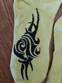 Calze realizzate in cotone ed elastan. La grafica tribale è disegnata sulla trama del tessuto, è presente un etichetta non rimovibile nella parte superiore raffigurante il logo del marchio.