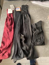 4 lotti di calze da uomo, tutte nuove ancora con etichetta e cucitura che le tiene insieme. Tutti colori scuri anche quando in foto sembrano piu’ chiari. Tutte calze lunghe, no calzini.