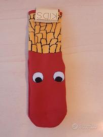 Questi calzini antiscivolo "Patatine Rosso" sono ancora con il cartellino. Sebbene esso sia rovinato, i calzini sono intatti, praticamente nuovi di zecca.