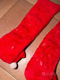 Vendo bellissimi calzini antiscivolo di Topolino (Mickey Mouse) color rosso acceso. Sono realizzati in tessuto "peluche" effetto nuvola, estremamente soffici al tatto e perfetti per stare al caldo. • Dettagli: Applicazione 3D di Topolino con cappellino di Babbo Natale. • Sicurezza: Gommini antiscivolo sulla pianta del piede. • Stato: Mai usati. • Taglia: 38-41 Spedizione veloce!
