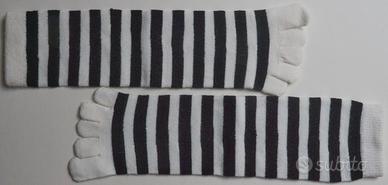 Calze a righe bianche e nere mistolana con dita e senza tallone, mai indossate, nuove senza cartellino.