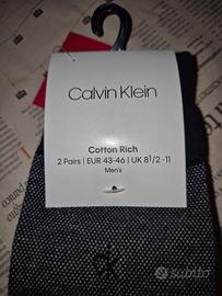 vendo calzini calvin klein, 2 coppie, colore grigio/nero, taglia eu 43-46, in cotone 71% e polyamide 23%, , adatti alla stagione invernali, altezza alla caviglia. misure approssimative in centimetri: lunghezza 23, altezza 26. molto morbide al tatto. colore alla moda che li rende originali. nuovissimi mai utilizzati. li vendo essendo un regalo non gradito. ne ho già altri. assicuro l'ottima qualità delle calze e la ricercatezza dei materiali. euro 15
