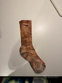 Calzini Nike con un particolare effetto tie-dye marrone. Perfetti per un look casual. - Logo Nike ricamato. - Tessuto a coste.
