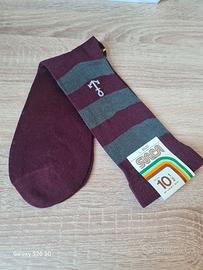 Calzini da uomo in cotone Makò con un design a righe grigie e un'ancora rossa ricamata. Sono comodi e traspiranti. - Modello a righe. - Dettaglio con ancora rossa. - Tessuto in cotone Makò. Misura pianta del piede 24 cm