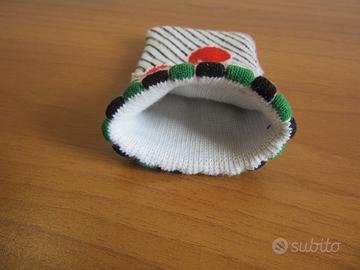 Vendo piccolo calzino porta oggetti. Morbido con disegno ciliegia. Dimensioni circa 8x4 cm.
