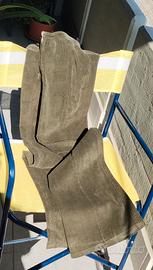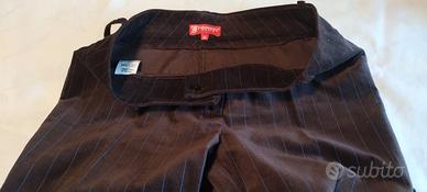 Tre pantalonii in velluto di cotone 95% in perfette condizioni. Sono a zampa di elefante. Marrone a righine blu, vita bassa, cavallo 21 cm, girovita 79 cm. Verde sottobosco vita standard 26 cm, girovita 79 cm. Leggermente elasticizzato. Viola vita standard 26 cm, girovita 76 cm leggermente elasticizzato. Nessun segno di usura.