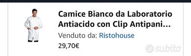 Camice Bianco da Laboratorio Antiacido - Marca Italiana Modello Unisex, Elastici ai Polsi, Tre Tasche Chiuse con Aletta a Strappo e Clip Nascosta (XXL) e Occhiali protettivi