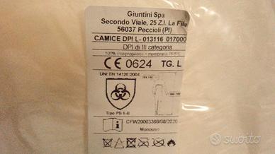 Confezione di 10 pezzi di Camice monouso di III categoria, taglia L. Realizzato in 100% Polipropilene con membrana PP/PE. ( Varie confezioni da 10 pezzi disponibili )
