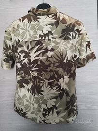 Camicetta a fiori, stile hawaiano, sulle tonalità del verde. 100% cotone